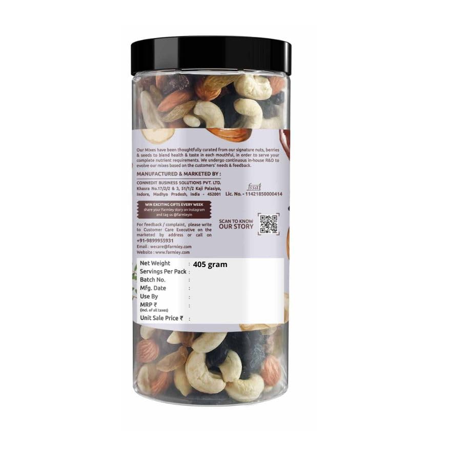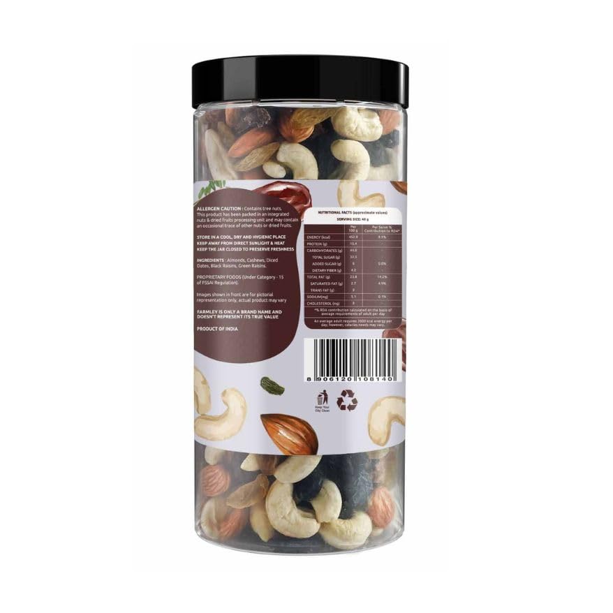 - Contains almonds, cashews, dates, black raisins, and green raisins